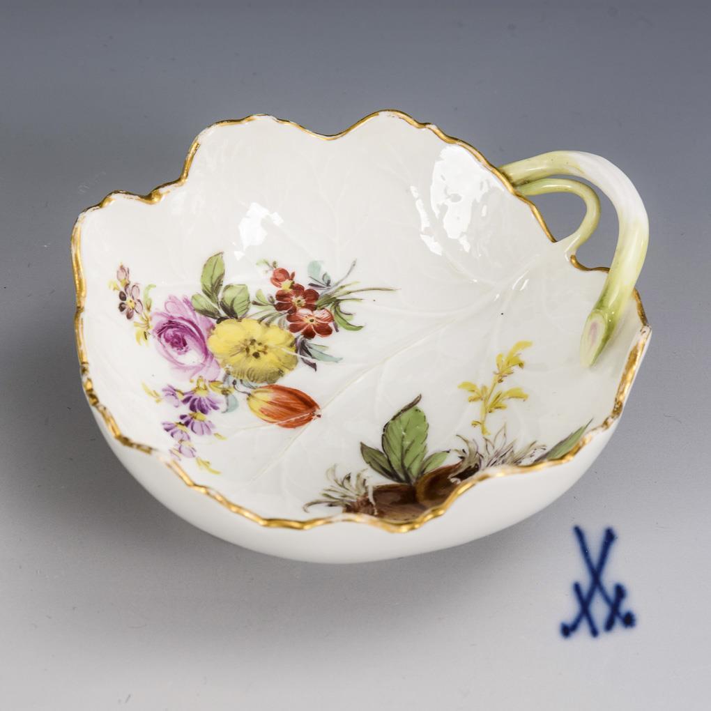 Leaf bowl with fruit and flowers painting. Meissen.