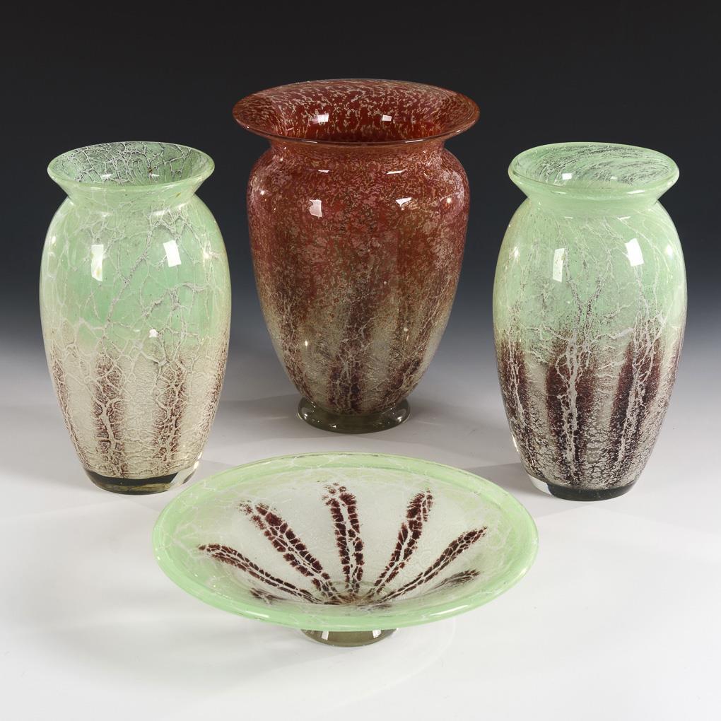 3 vases and green bowl "Ikora". WMF.