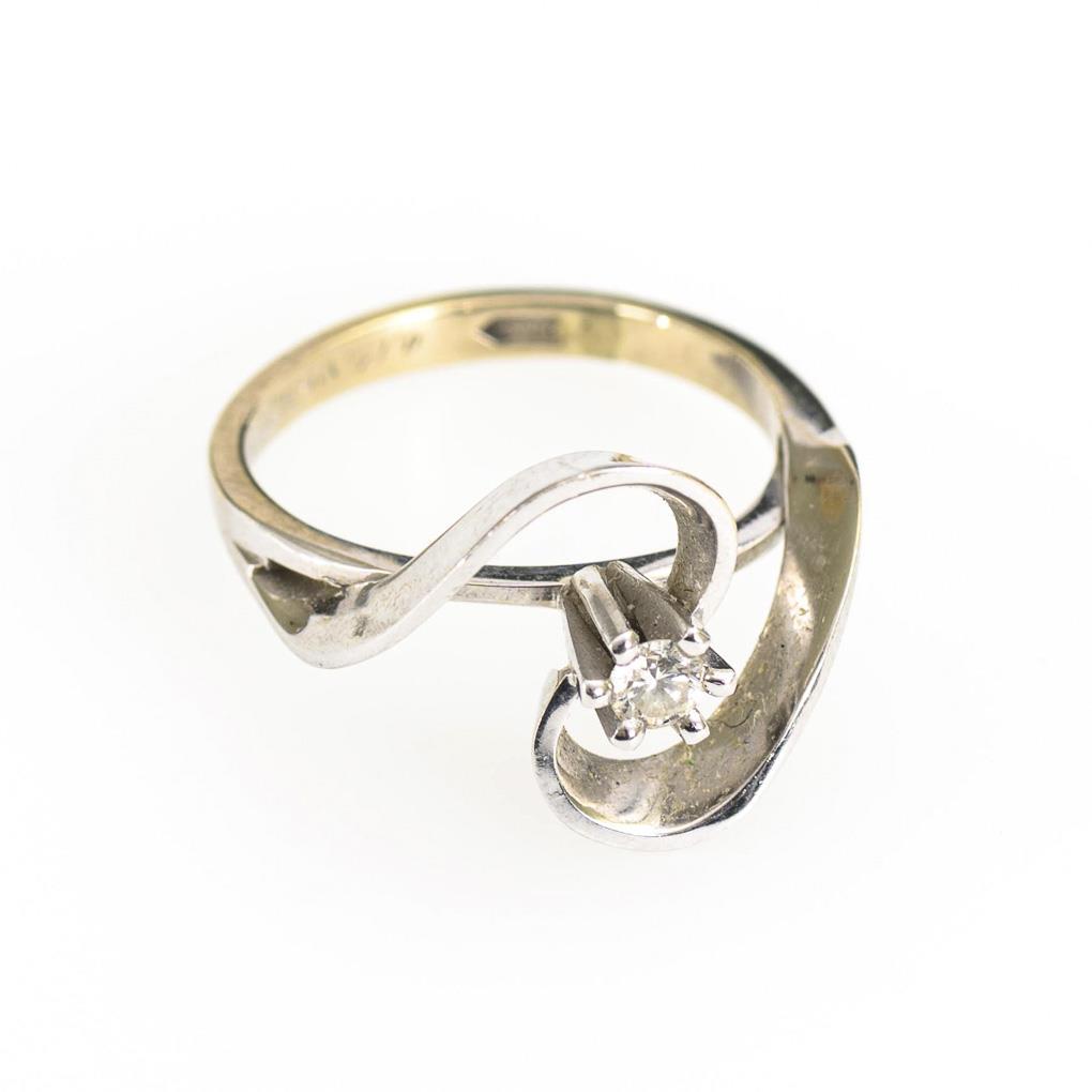 White gold 585 stamped. Ring size 53. diamond 0.12 ct/vvsi. 3,5 g.