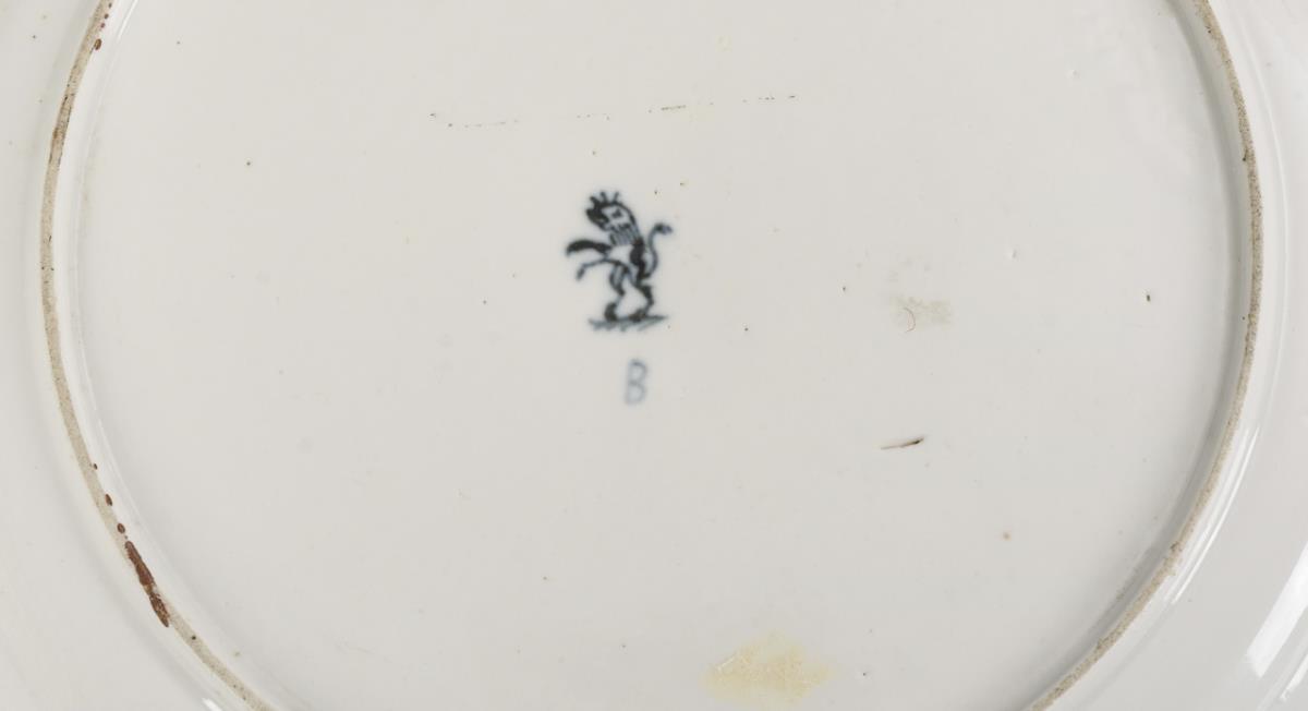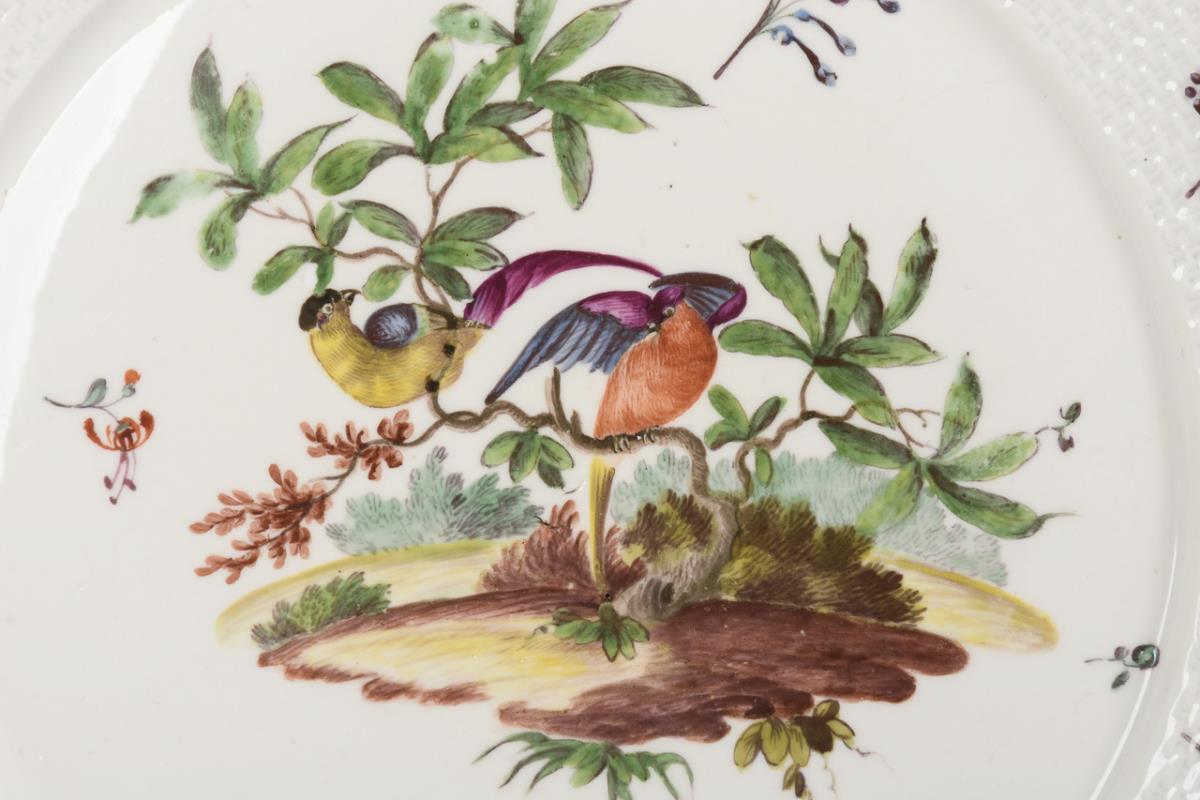 Form "Altozier". In the mirror depicting a landscape island with two exotic birds on a tree. Rim rubbed.