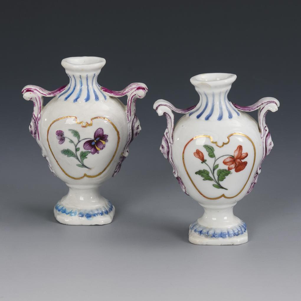 Pair of miniature vases with floral painting. Closter Veilsdorf.