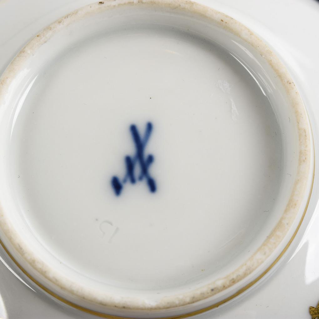 Polychrome painted, gold decorated. H 6,5 cm, Ø 11 cm.