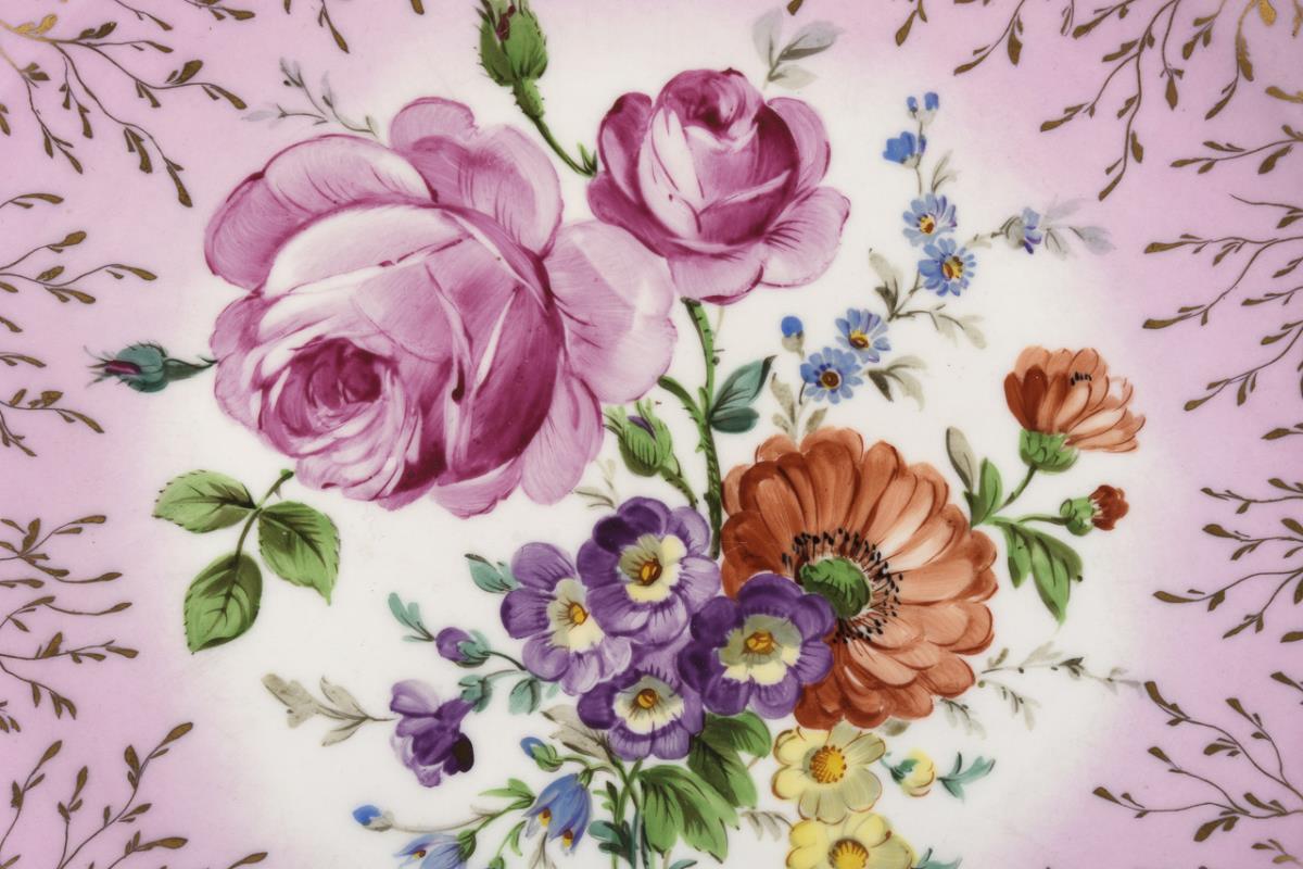 Vegetable plate with floral painting and pink stock. KPM Berlin.