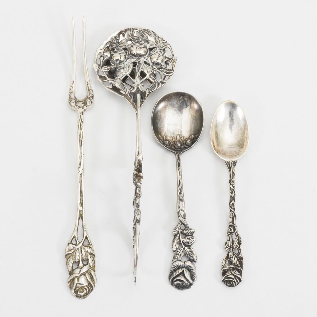 13 pieces, decor Hildesheim Rose: pastry tongs, sugar spoon, serving fork and 10 mocha spoons. Slight signs of use.