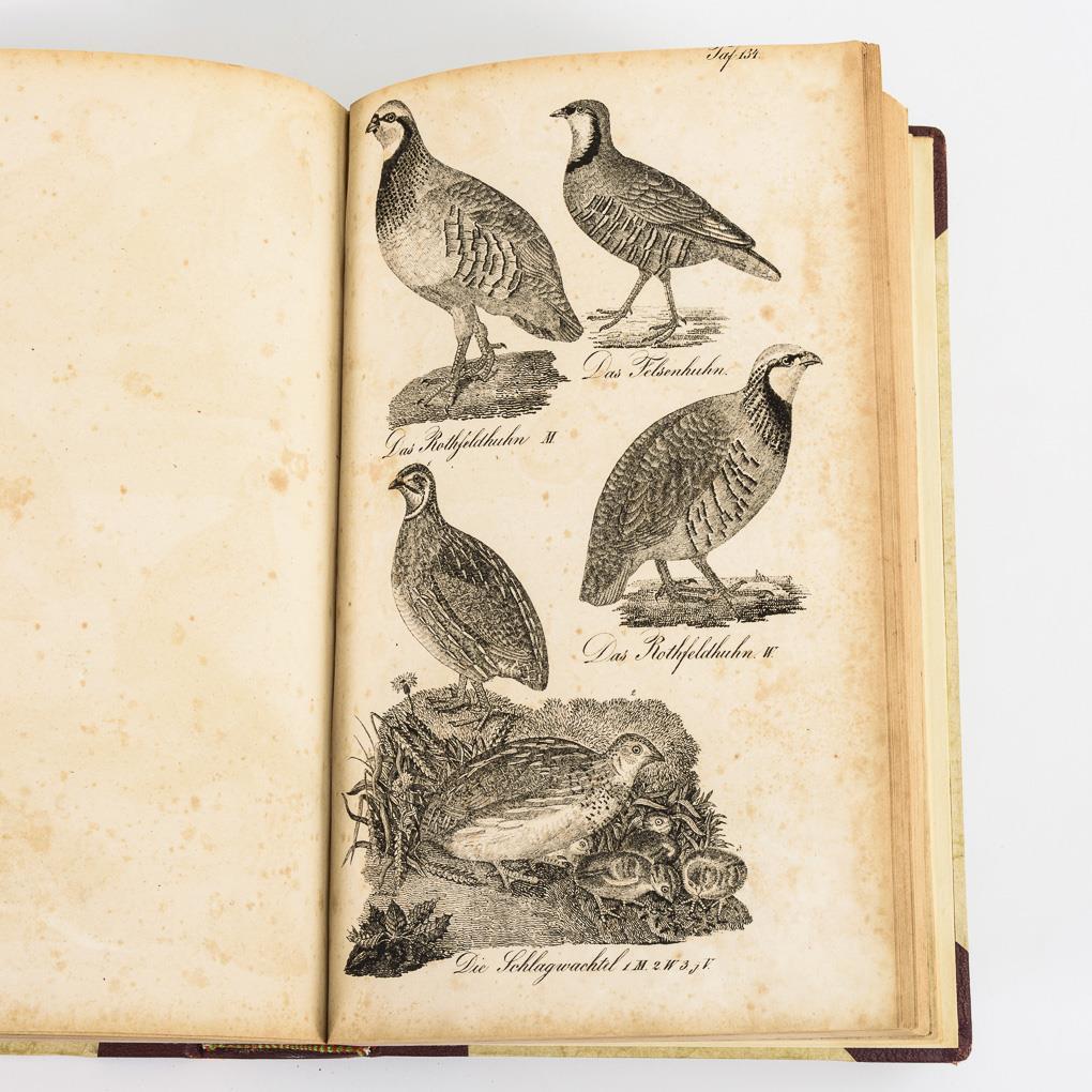 254, (4) pages and 183 lithograph plates with bird illustrations, not colored. Volume younger rebound in burgundy half leather. One register page restored, with some loss of text and one illustration page with heavier creases. Otherwise block in good condition for age.