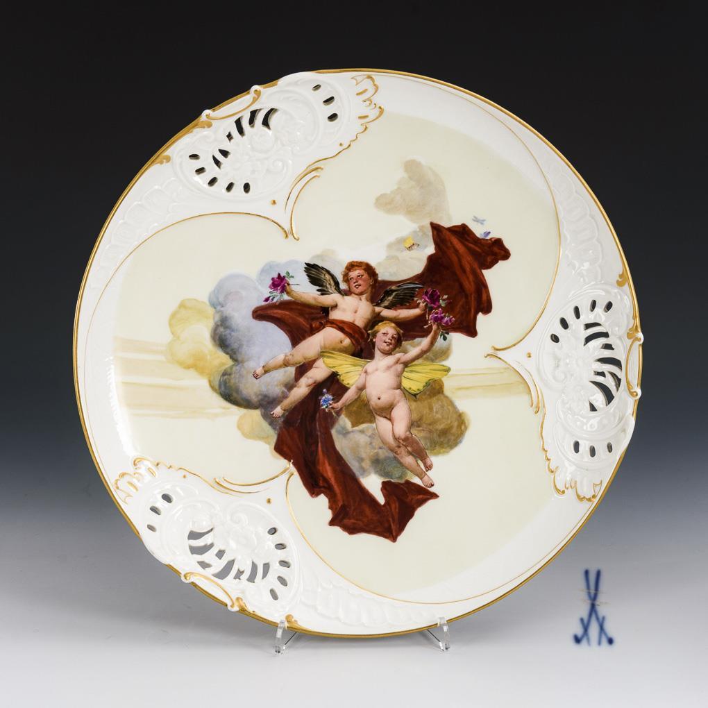 Rare Art Nouveau plate with putti depiction| supplement see text. Meissen.