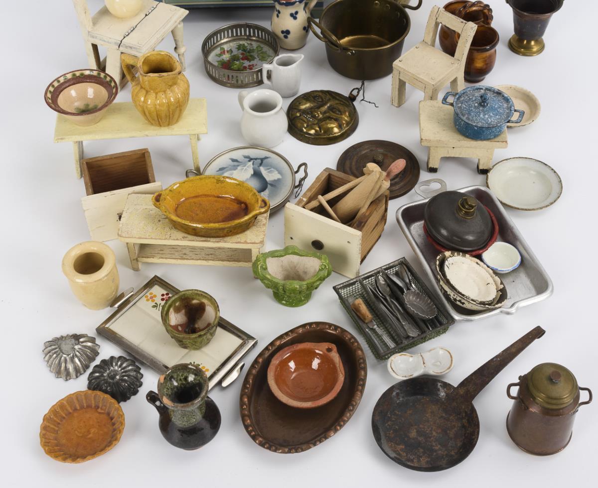 Convolute tin stove, furniture and accessories. For the doll kitchen.