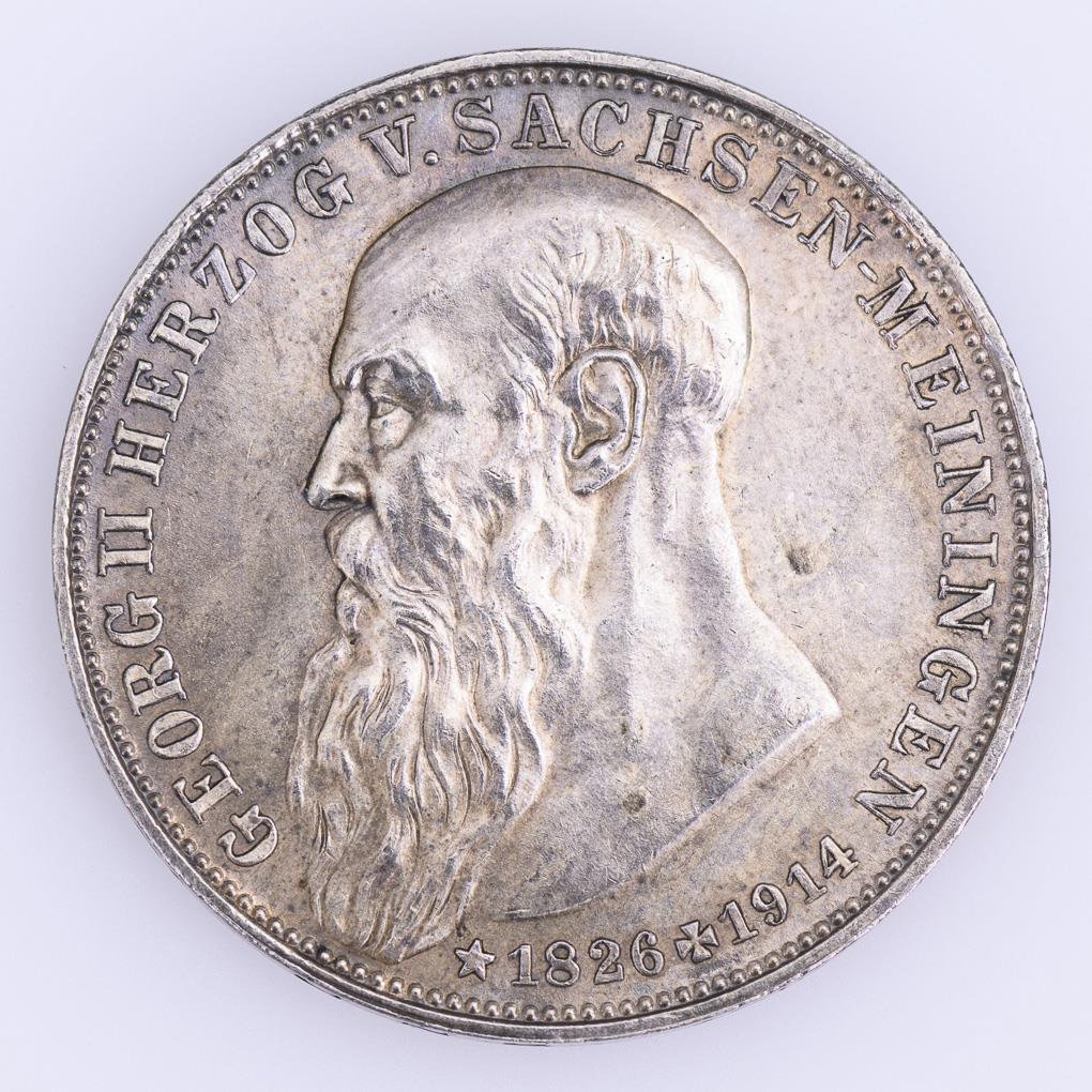 On the death of the Duke. "George II Duke of Saxe-Meiningen 1826 1914", portrait with long beard, looking to the left. Condition: excellent, slightly tarnished.