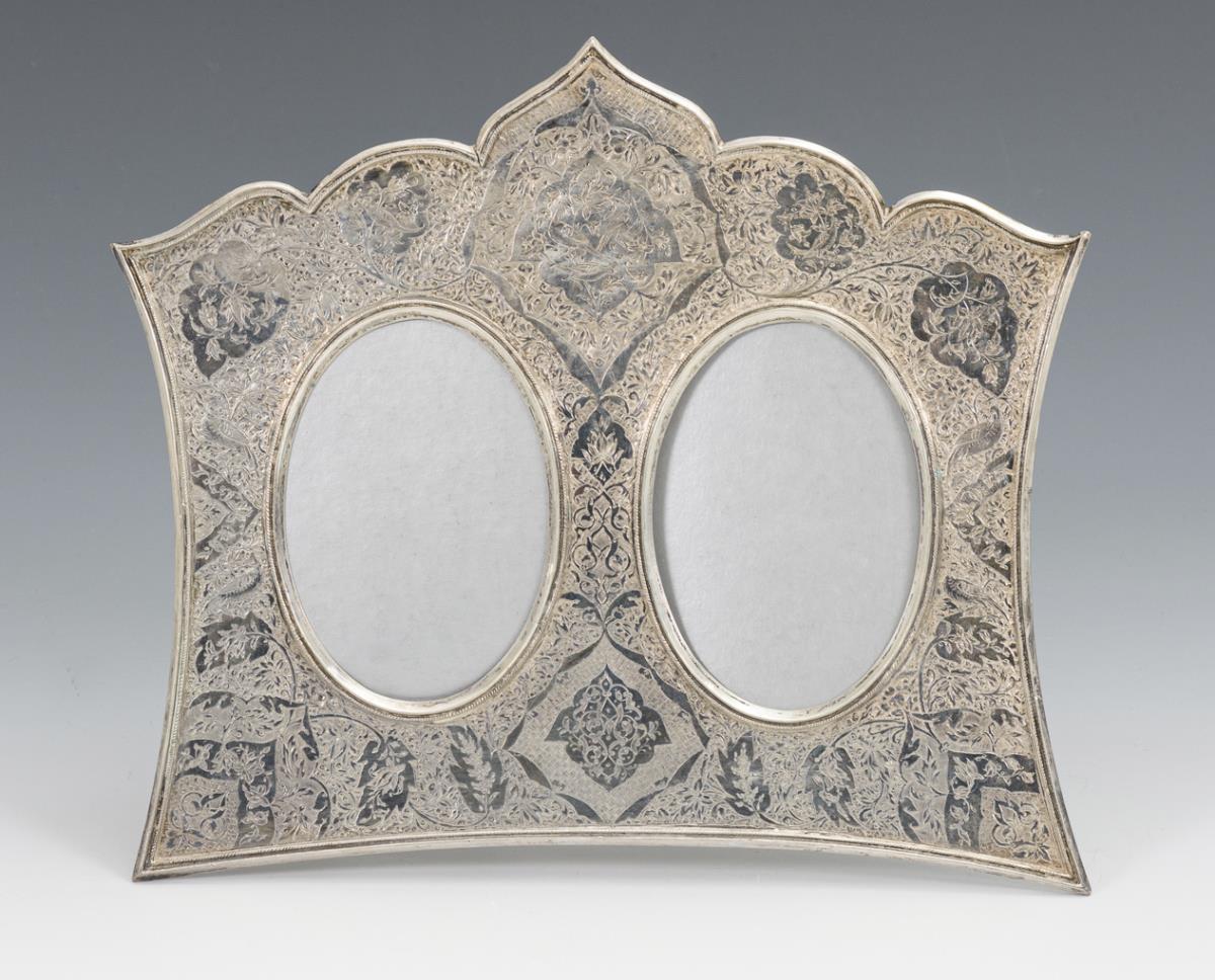Floral engraved stand-up frame for 2 photos.