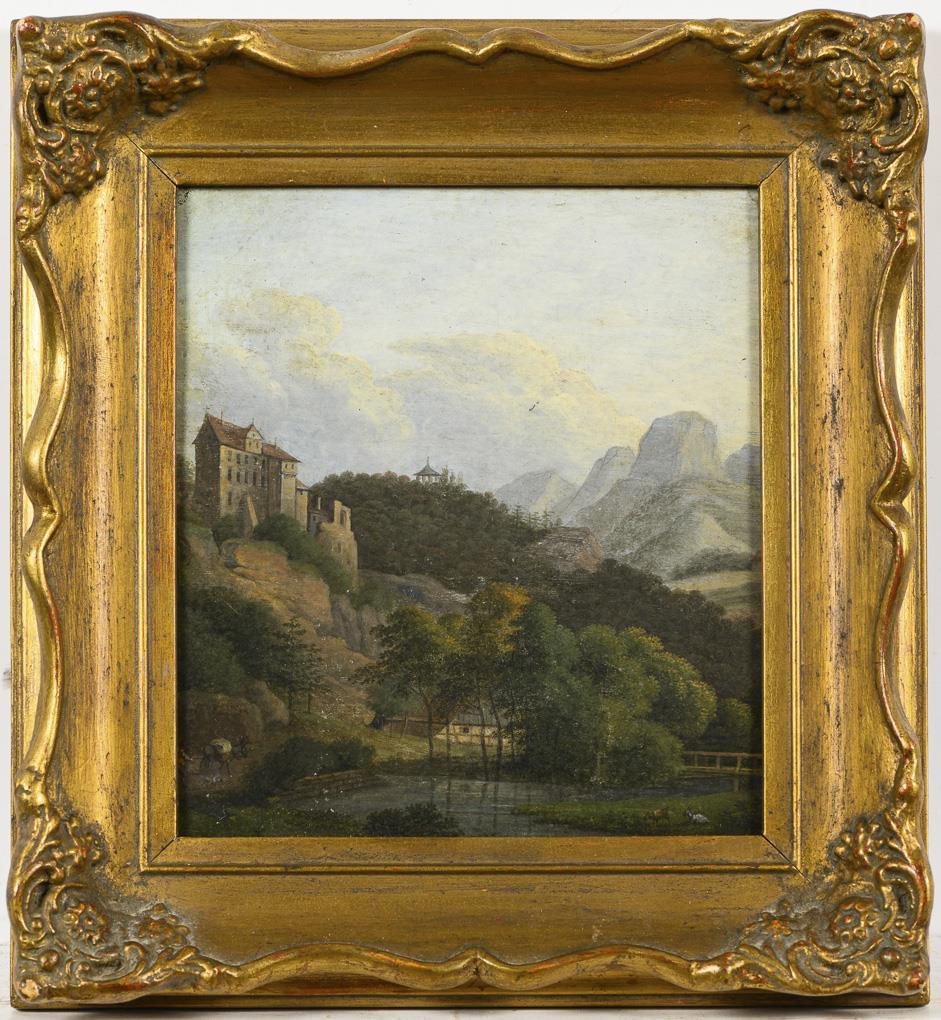 Biedermeier painter around 1840/50: Mountain landscape with castle
