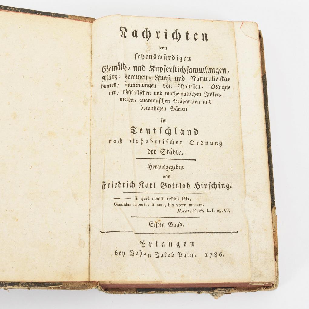 "... Münz, -Gemmen- Kunst und Naturalienkabineten, collections of models, machines, physical and mathematical instruments, anatomical preparations and botanical gardens in Germany according to the alphabetical order of the cities".