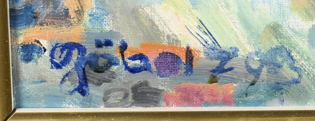 Oil / painting cardboard. Signed lower left. Dated: (19)93.
