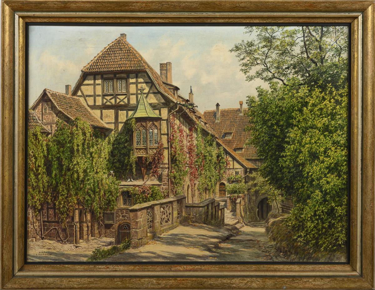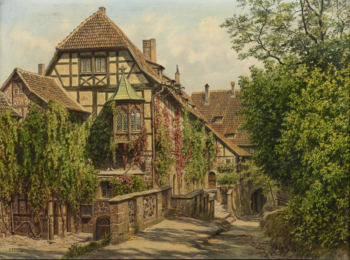 Warm light over the courtyard of the medieval castle on the edge of the Thuringian Forest.