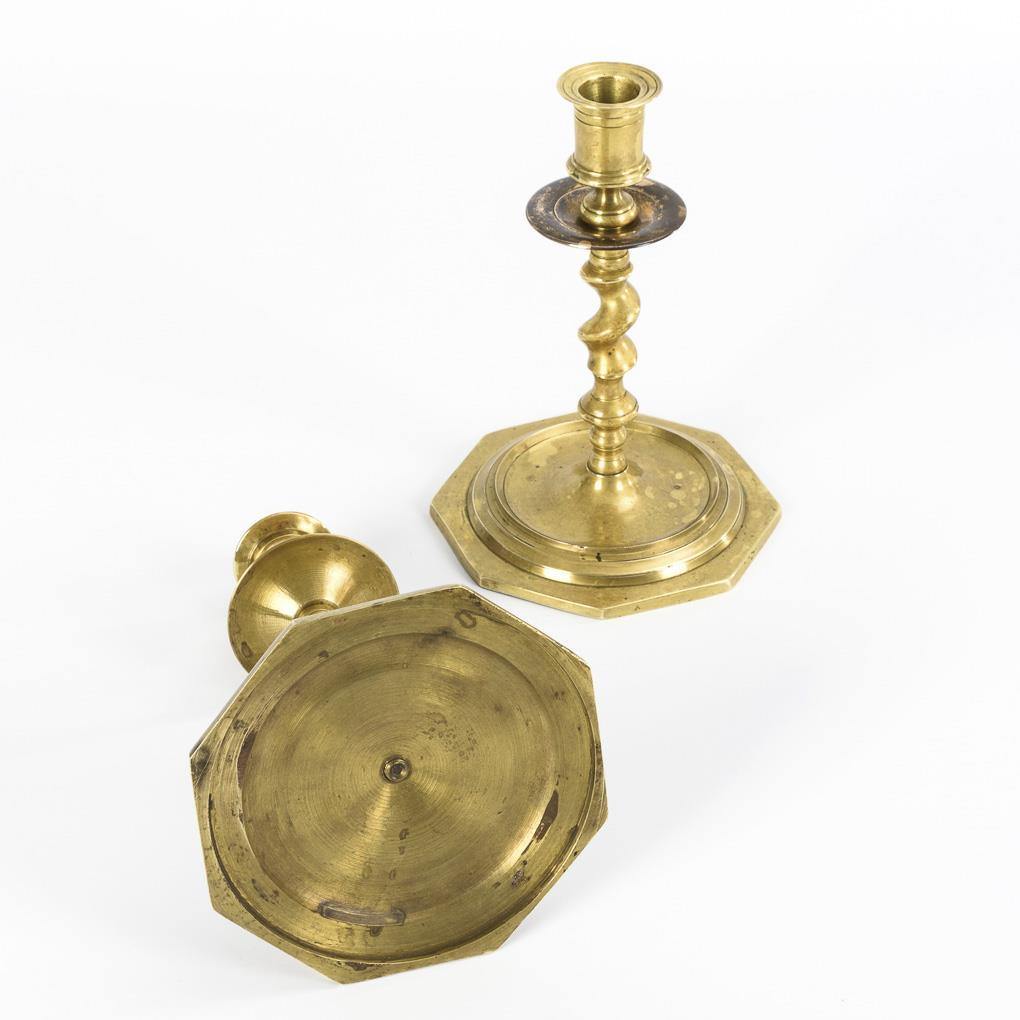Octagonal base plate with profiled bowl, twisted shaft, roller spout over drip plate. Traces of clamping (in a lathe?).