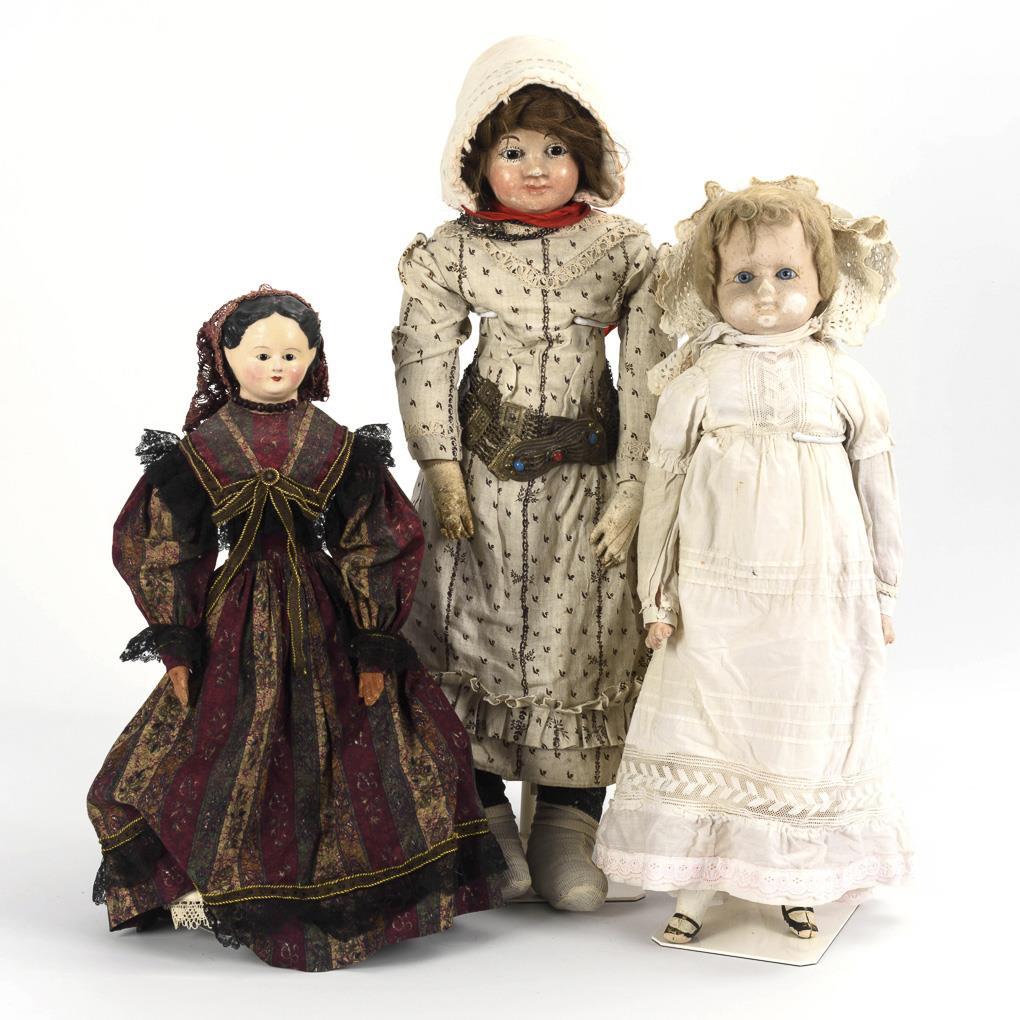 3 dolls with waxed heads.