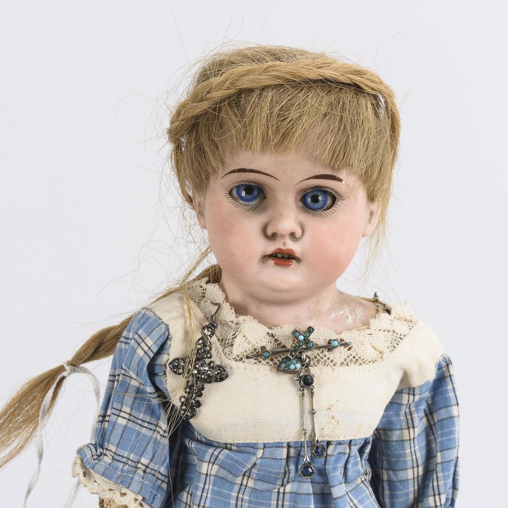 3 defective dolls for spare parts: 1x crank head and limb body, 2x chest head and leather body. All with long dress.