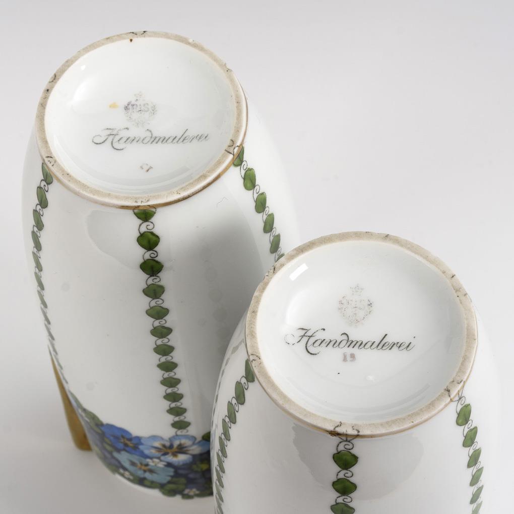 Pair of art nouveau vases with floral motif. Schlegelmilch.