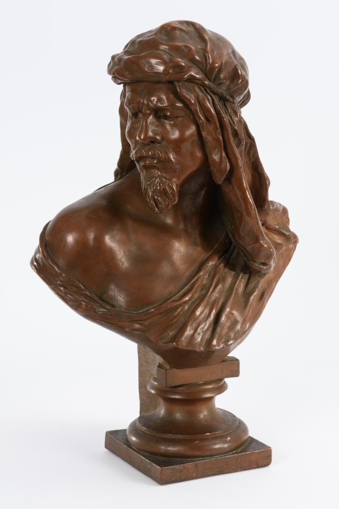 Zusammen mit dem basisartigen Sockel gestaltete Büste des bärtigen Arabers. Minimale Kratzer.