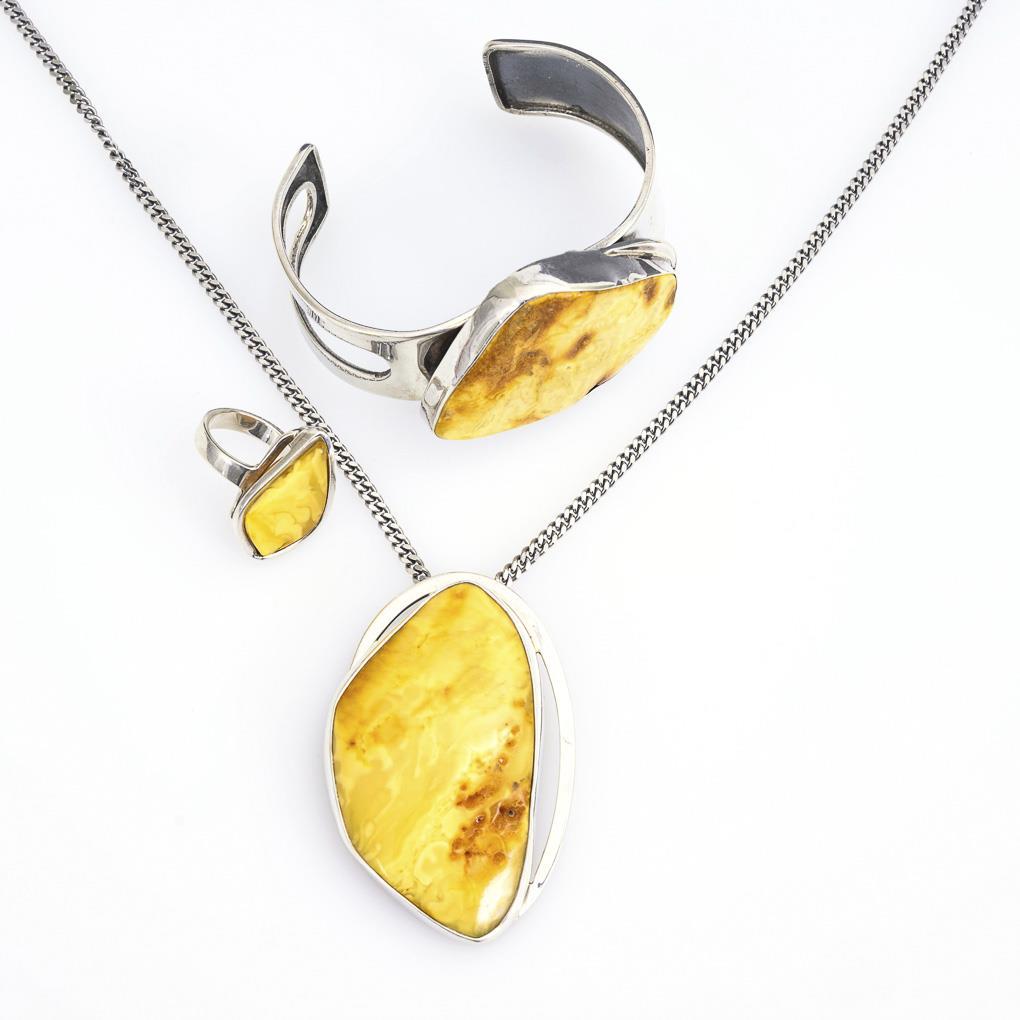 3-piece designer jewelry set with amber.