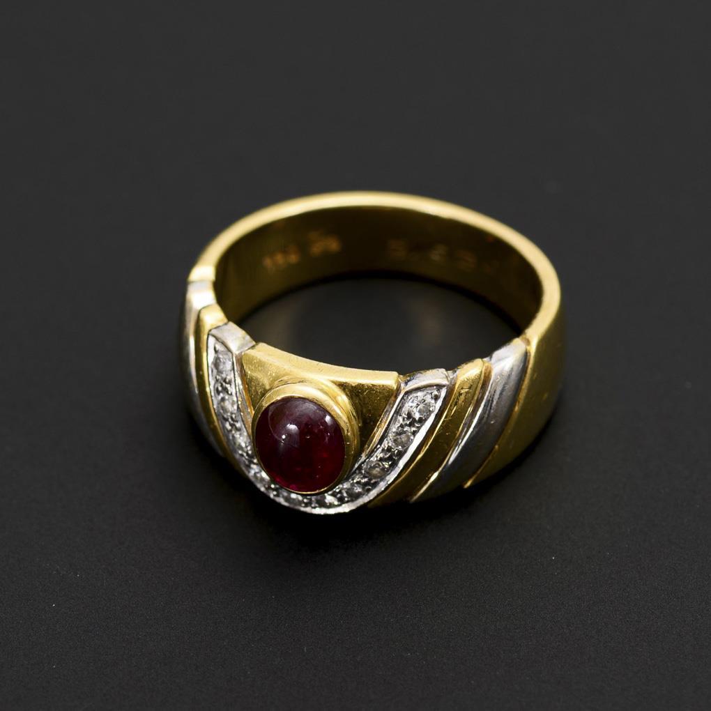 Yellow gold 750 stamped. Ring size 54. ruby 0.93 ct/ diamonds together 0.13 ct. 8.0 g.
