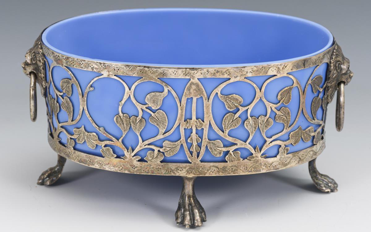 Augsburg bowl (c. 1804) with lion heads and paws. / Small Stuttgart bowl with flower garlands and medallions. Glass 2x with rim bump.