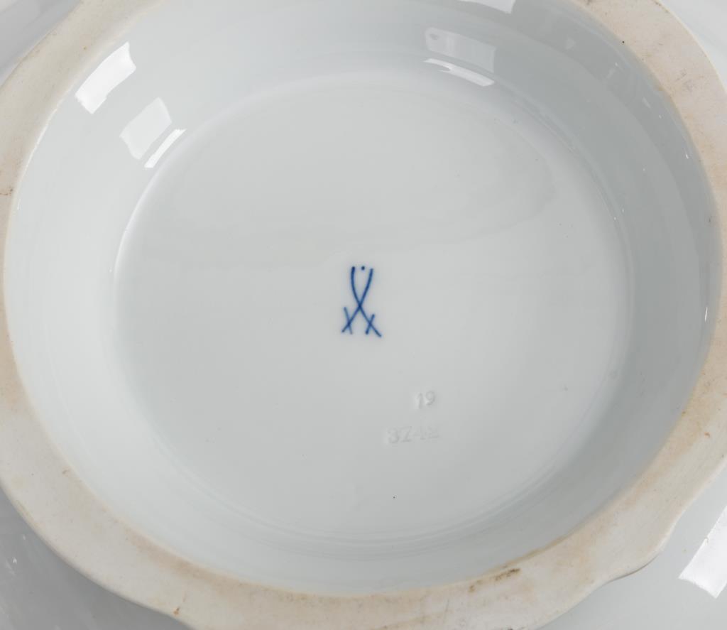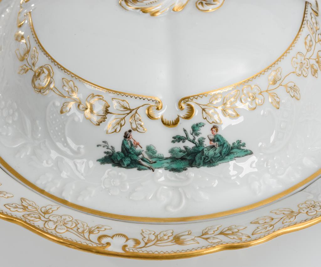 Kupfergrüne Blumen- und teils farbige Watteaumalerei.ø 32,5 cm.
