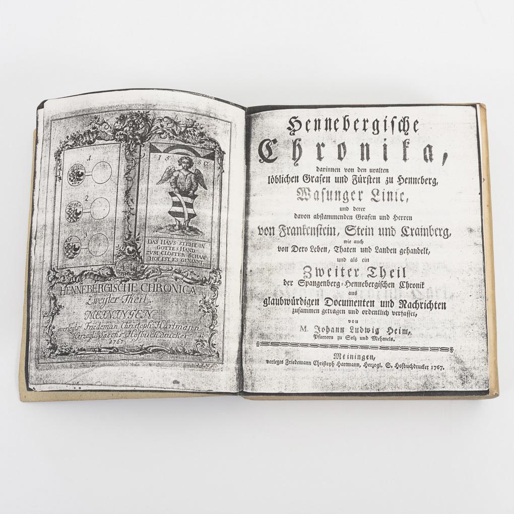 "darinnen von den uralten löblichen Grafen und Fürsten zu Henneberg Wasunger Linie, ... of Frankestein, Stein and Crainberg, ... and as a second part of the Spangenberg-Henneberg Chronicle".