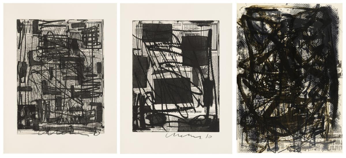 Untitled, etching, plate: 48 x 37.5 cm, sheet: 74 x 53 cm, carbon signature, [20]10 | Untitled, etching, plate: 49 x 37 cm, sheet: 74 x 53 cm, carbon signature, [20]10 and Untitled, color silkscreen, sheet: 70 x 100 cm, pencil signature (bottom left).