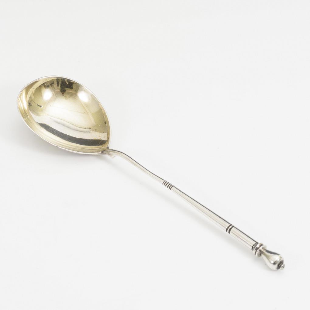 Fore spoon with floral engraving on the bottom of the gilded spoon.