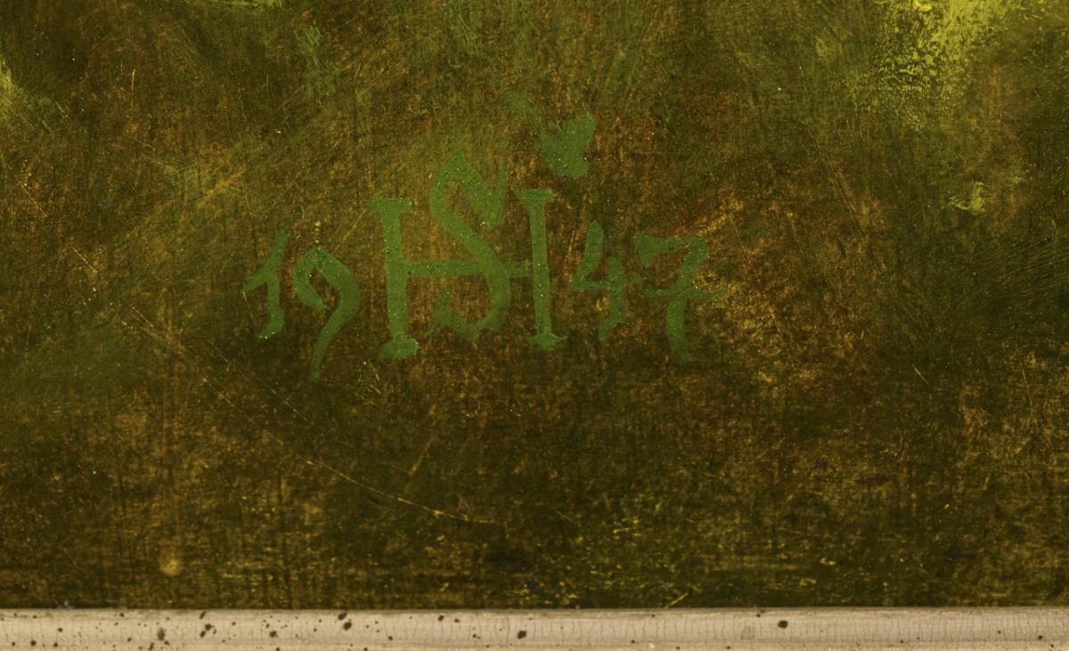 Oil / paint cardboard. Monogrammed lower left. Dated: 1947.
