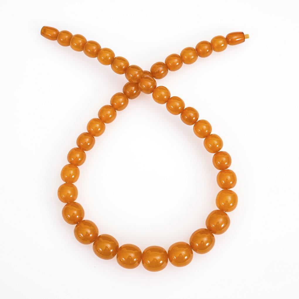 Lacing necklace with ambers in light gradient, on screw clasp.