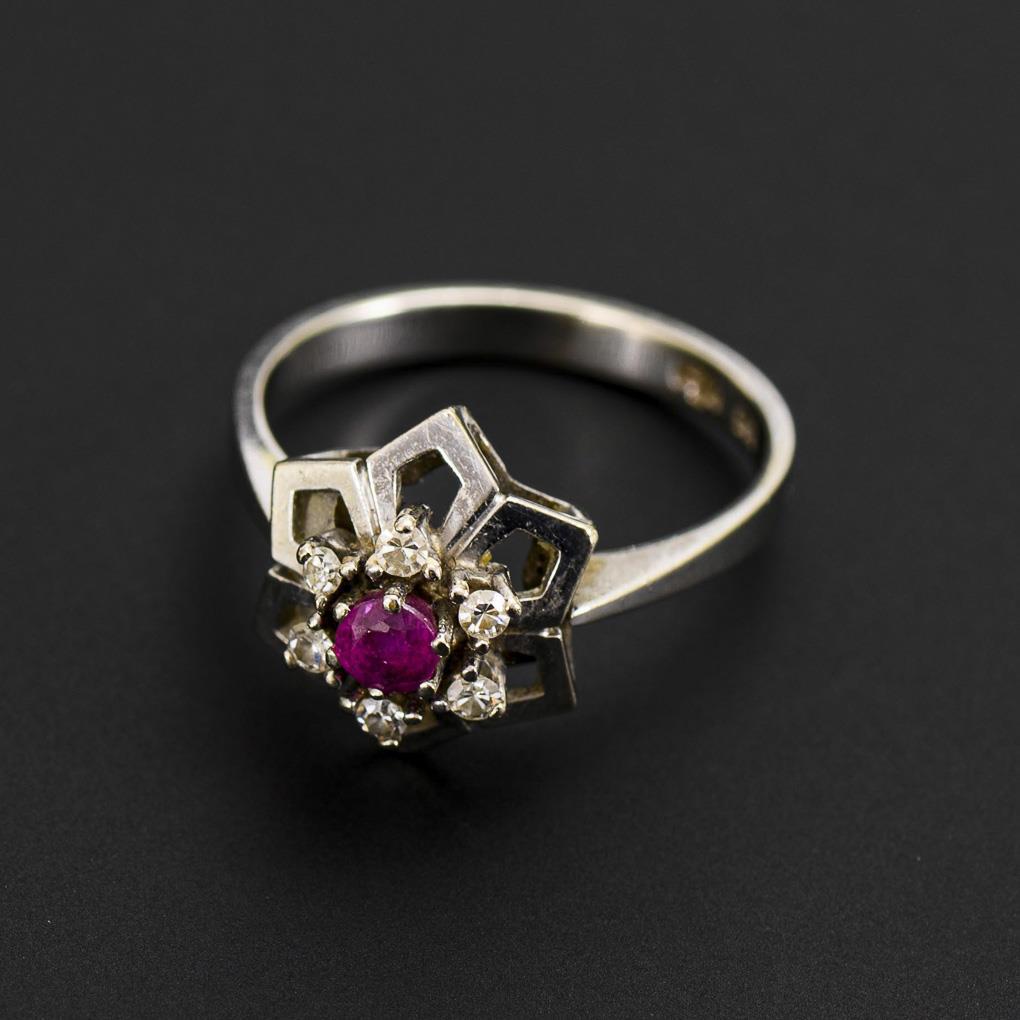 White gold 585 stamped. Ring size 57. 3.7 g.