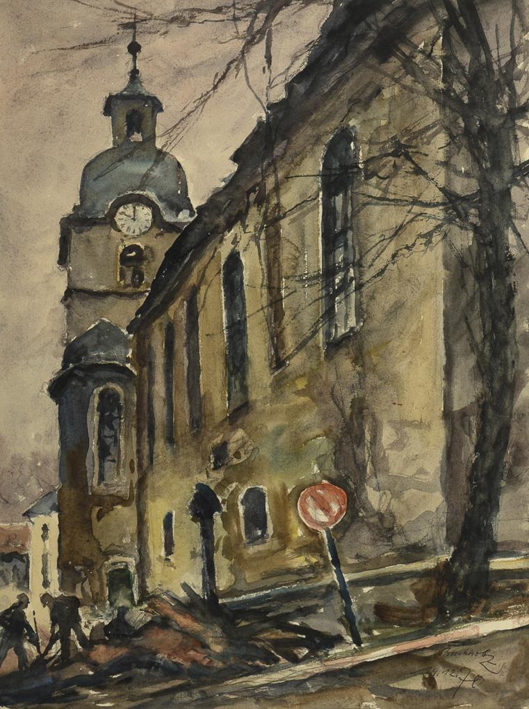 Watercolor. Signed lower right. Dated: 19.12.(19)70.
