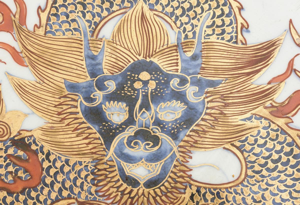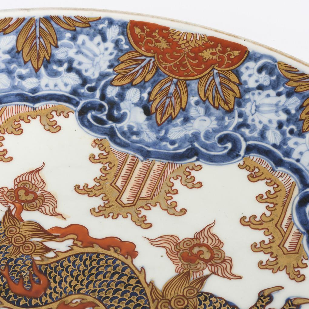 Porcelain, partly in underglaze blue, with red and gold painting. Ø 48 cm.