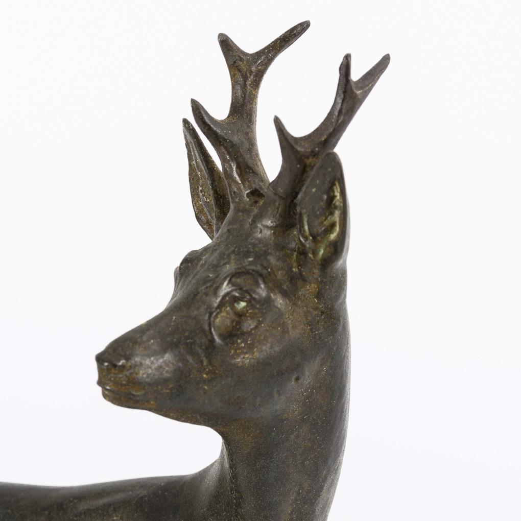 Cast metal bronze patinated, serpentine plinth. Inscribed. H 24,5 cm, total 27 x 20 x 9 cm.