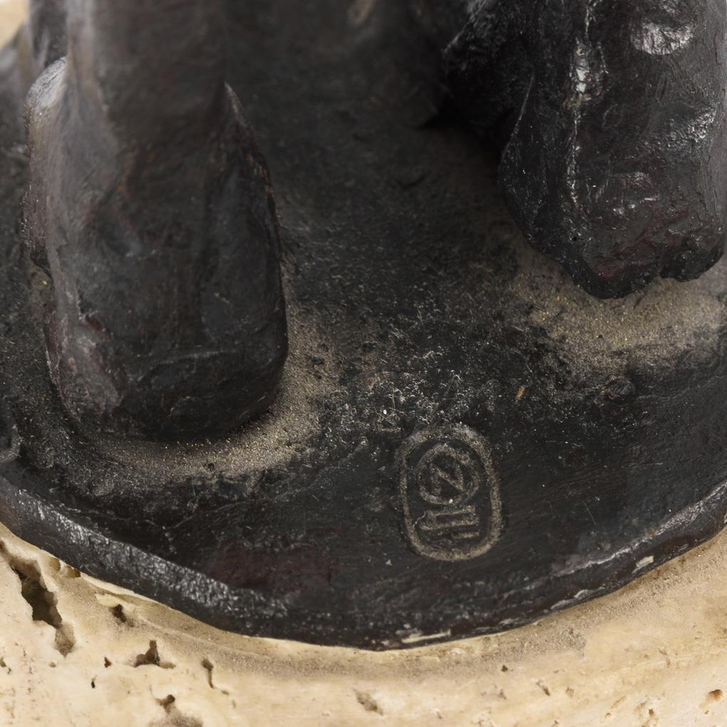 Iron cast and forged, black patina, limestone base. Inscribed with monogram, inscribed/titled/dated under the base: (19)83. h 33,5 / 37 cm.