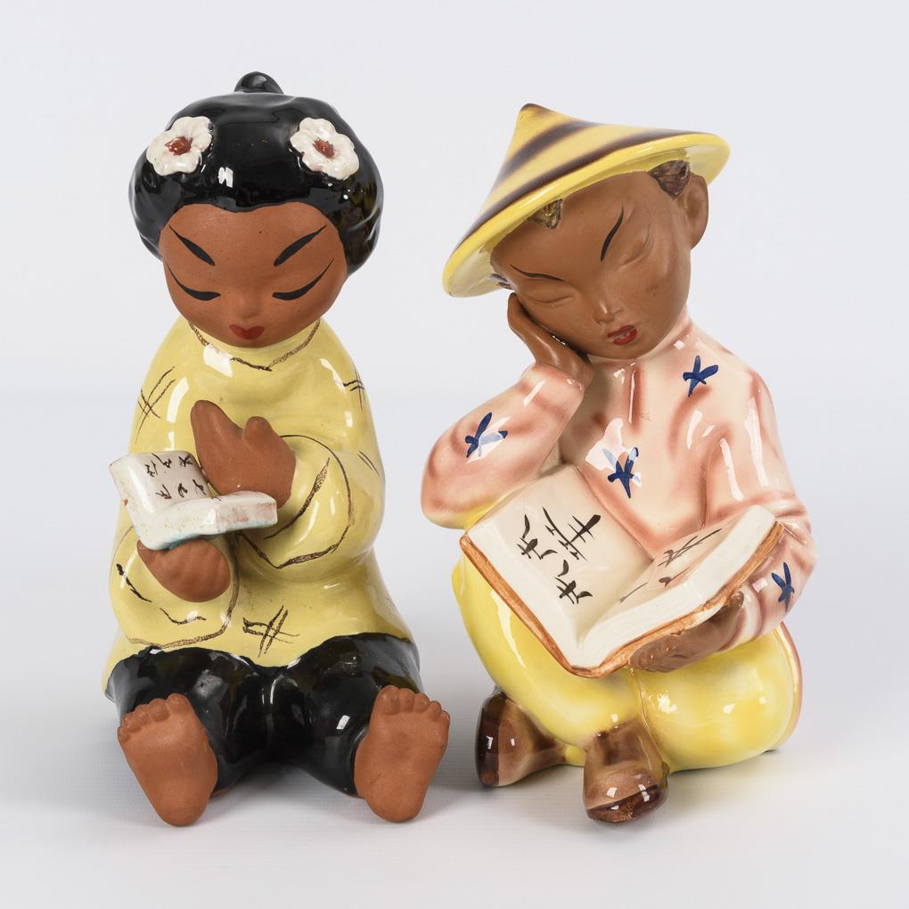 2 reading Asians as bookends. Gmundner Ceramics / Carli Bauer.