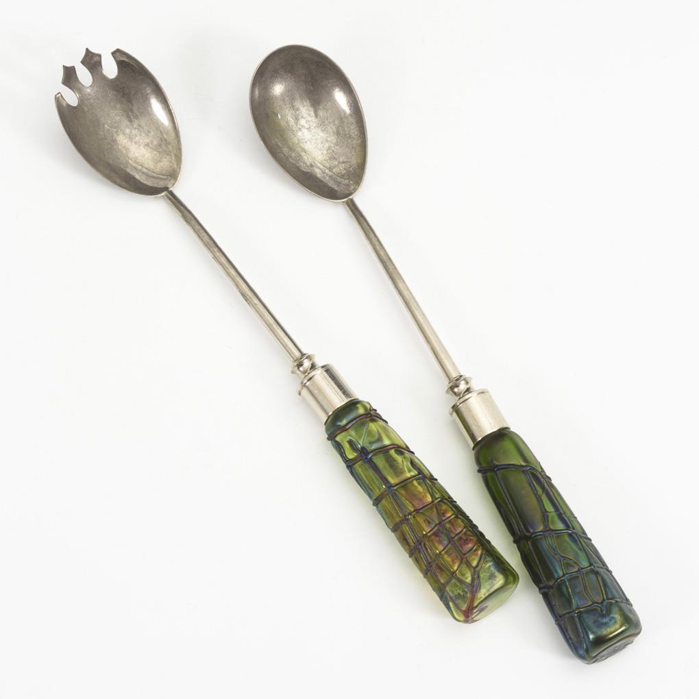 Art Nouveau salad servers with glass handles. Elisabeth.