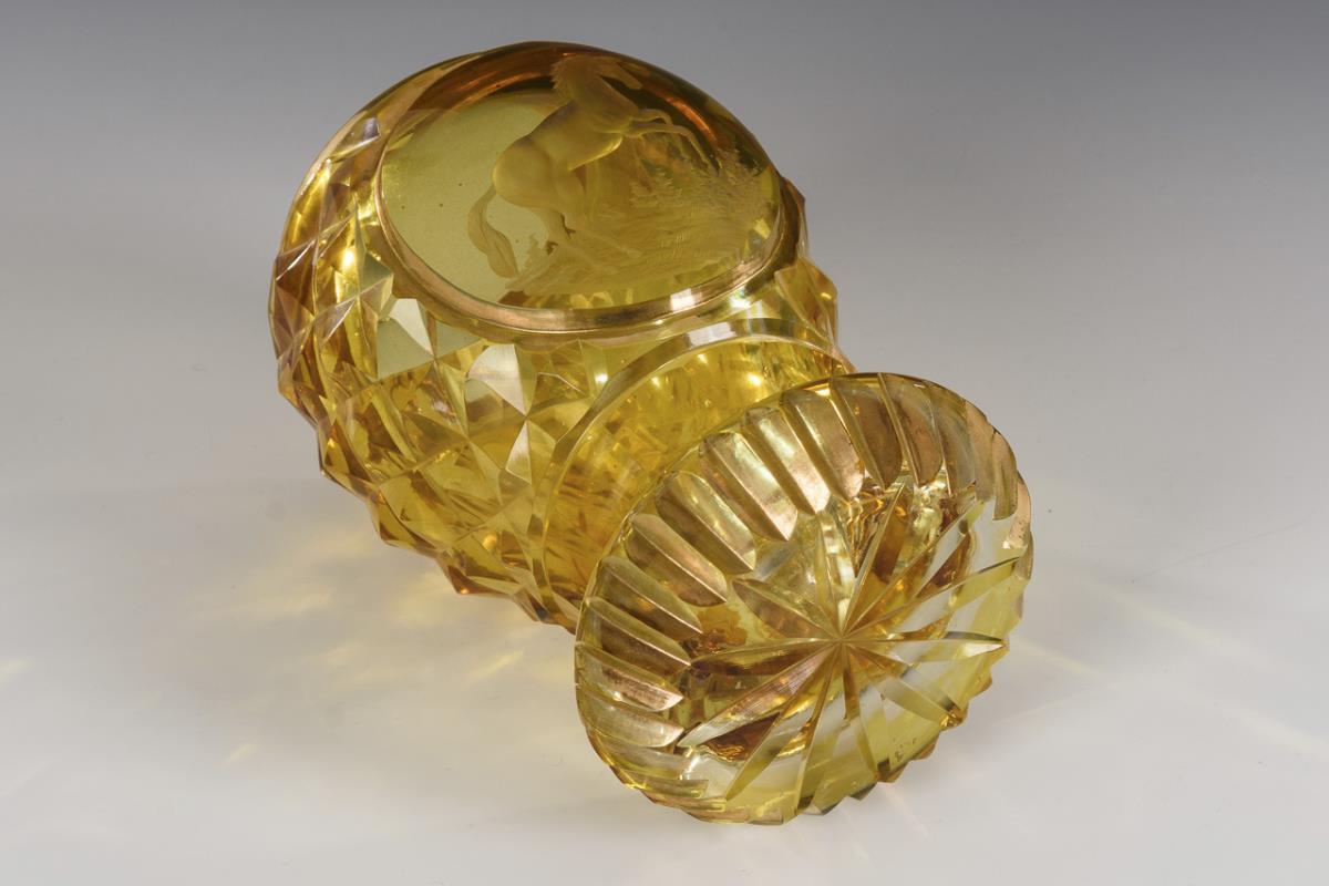 Colorless, thick-walled, yellow-stained glass, gold staffage. H 14 cm.