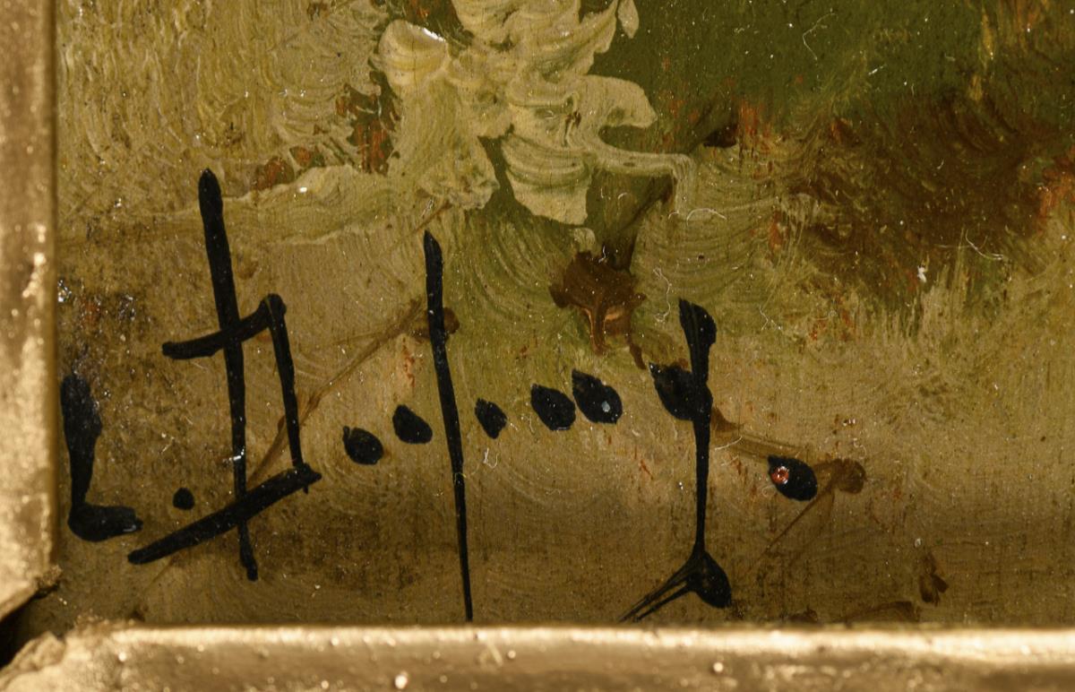 Oil / wood. Signed lower left with pseudonym "L. Dupuy".