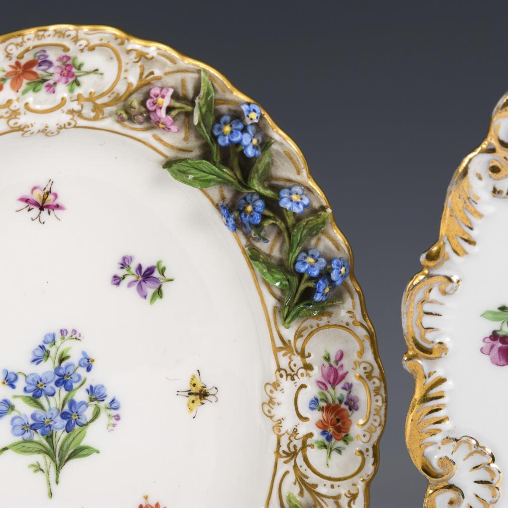 Relief plate and small plate with floral coating. Meissen.