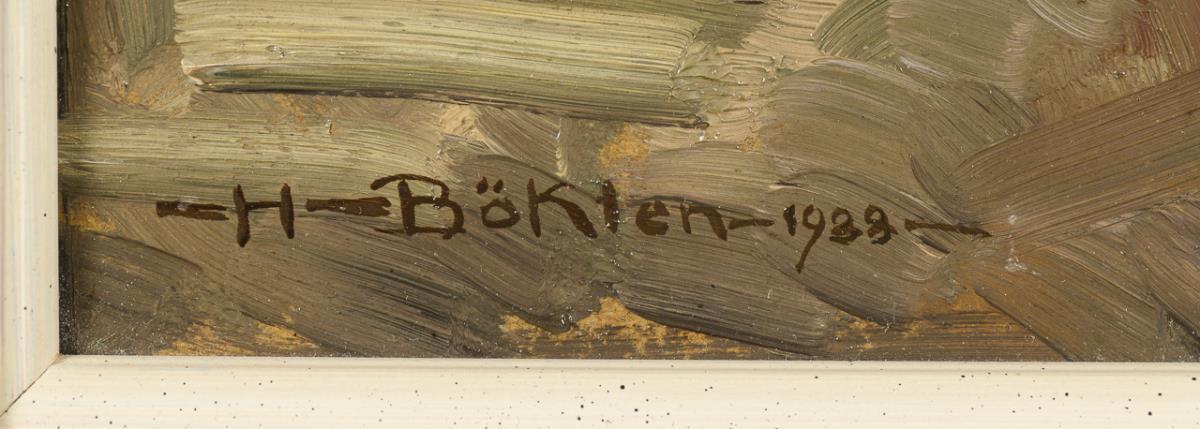 Oil/cardboard. Signed/dated lower left: 1933.