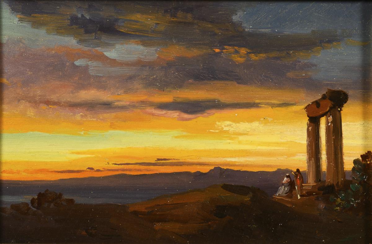 Italy c. 1850: Landscape with ruined temple
