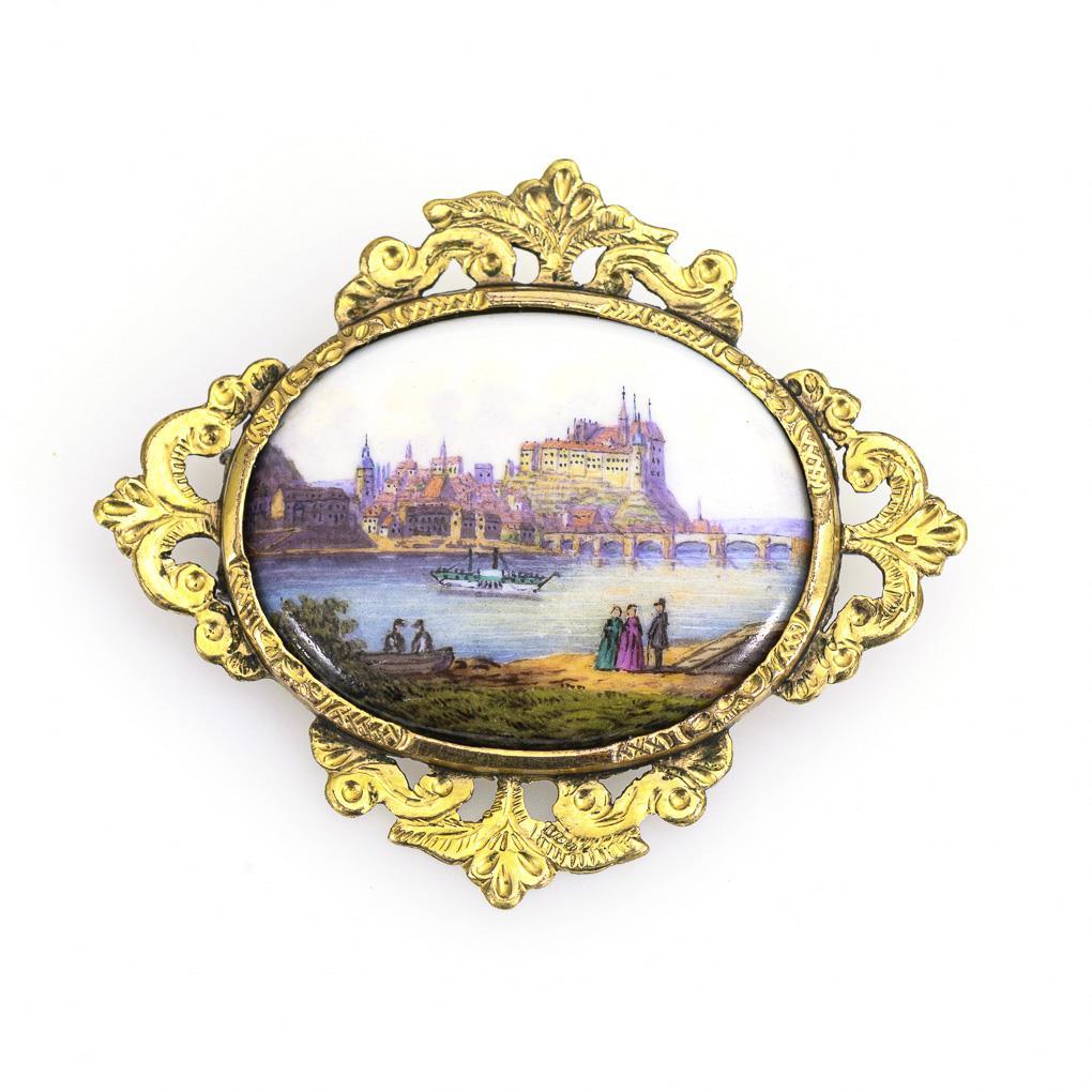 Meissen brooch with miniature of the Albrechtsburg Meissen 2nd H. 19th Jh.