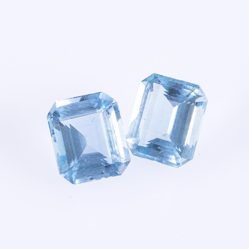 2 octagonal faceted aquamarines.