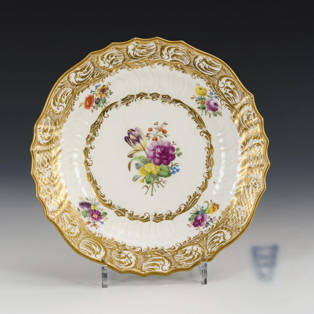 Polychrome painted, gold decorated. Ø 25,5 cm.