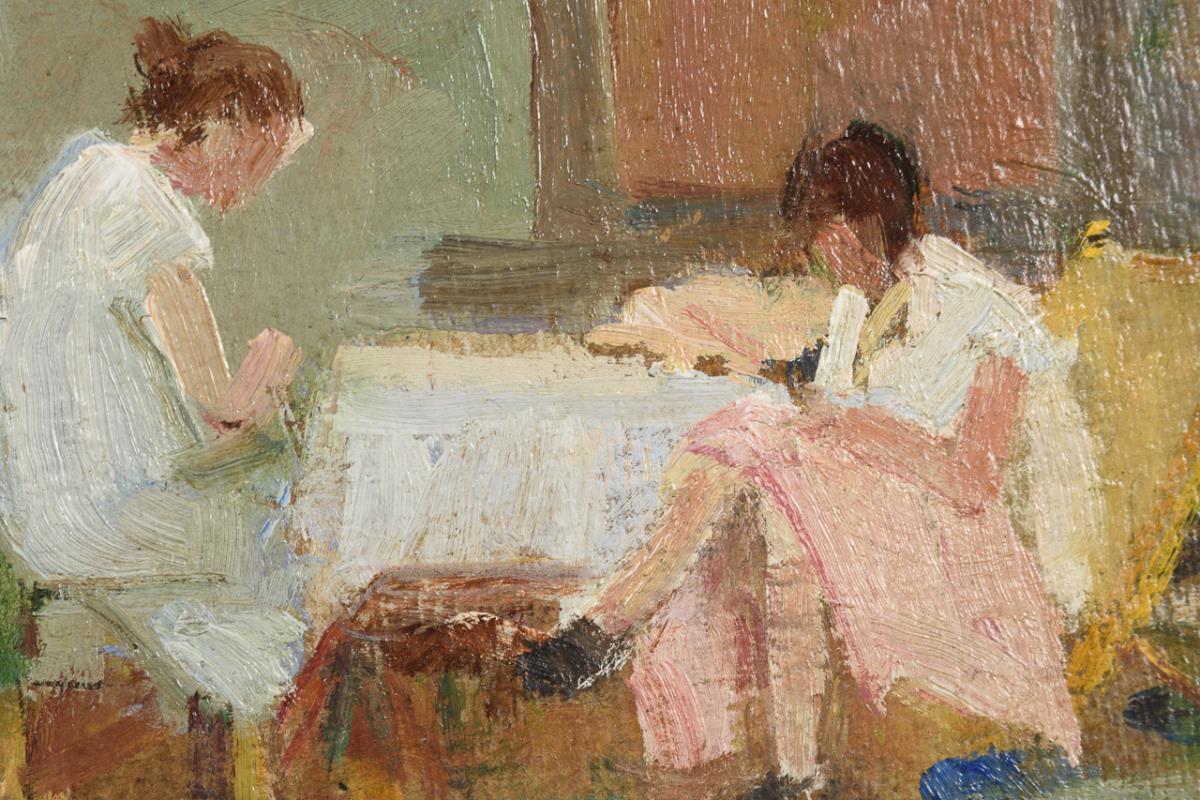 Oil/painted cardboard. Signed lower right.