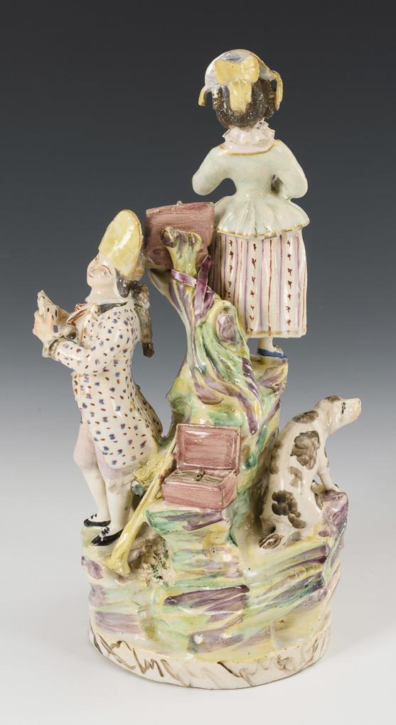 Baroque faience figural group with dog and monkey.