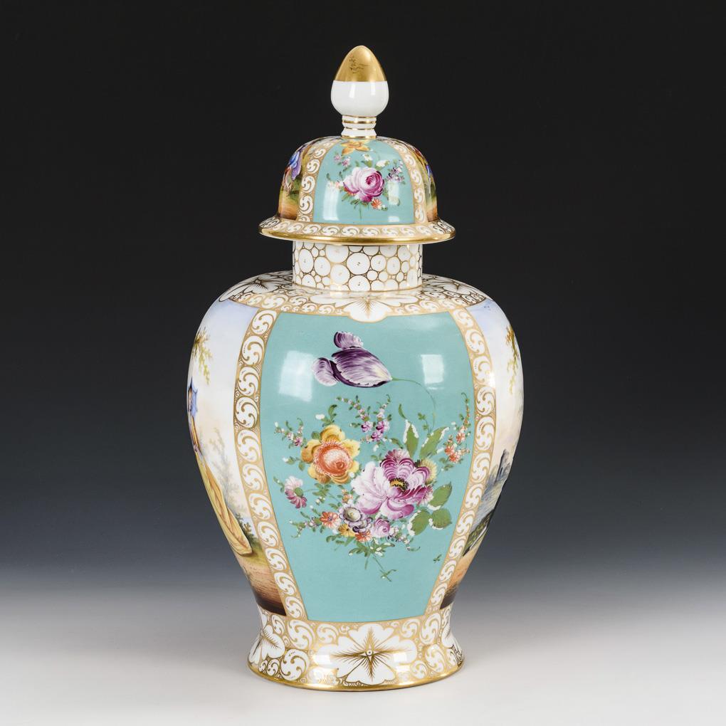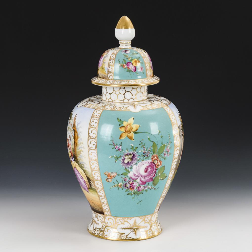 Lidded vase with Watteau painting. Potschappel.