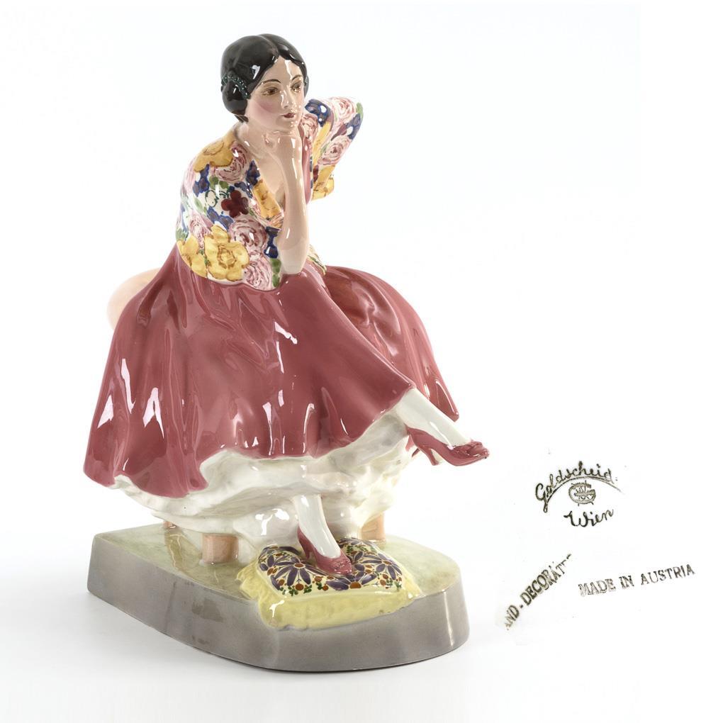 Sitting dancer "Carmen". Viennese manufacture Friedrich Goldscheider.